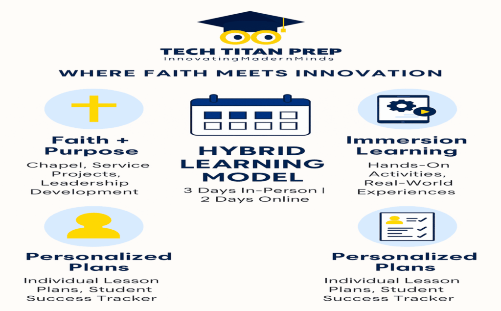 At Tech Titan Prep, we believe students thrive when they have the freedom to learn with balance. This unique approach provides both the flexibility of modern education and the personal support of a faith-centered classroom. Students benefit from small class sizes, ensuring personalized attention from dedicated educators. The program encourages independence while providing structured guidance at every stage. With this balanced approach, learners gain the skills, confidence, and character needed to succeed in high school and beyond.